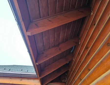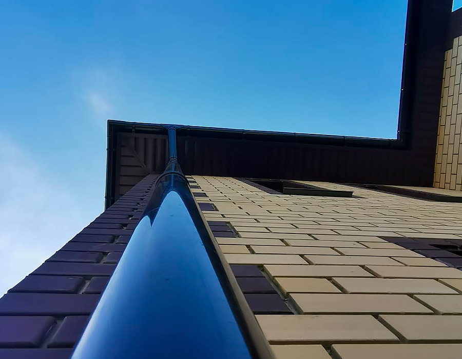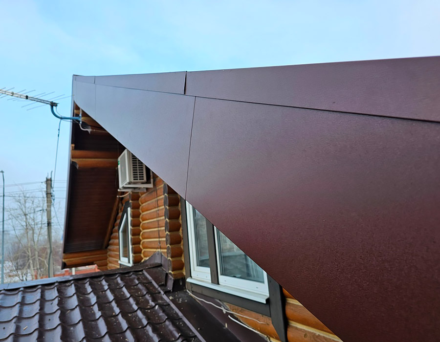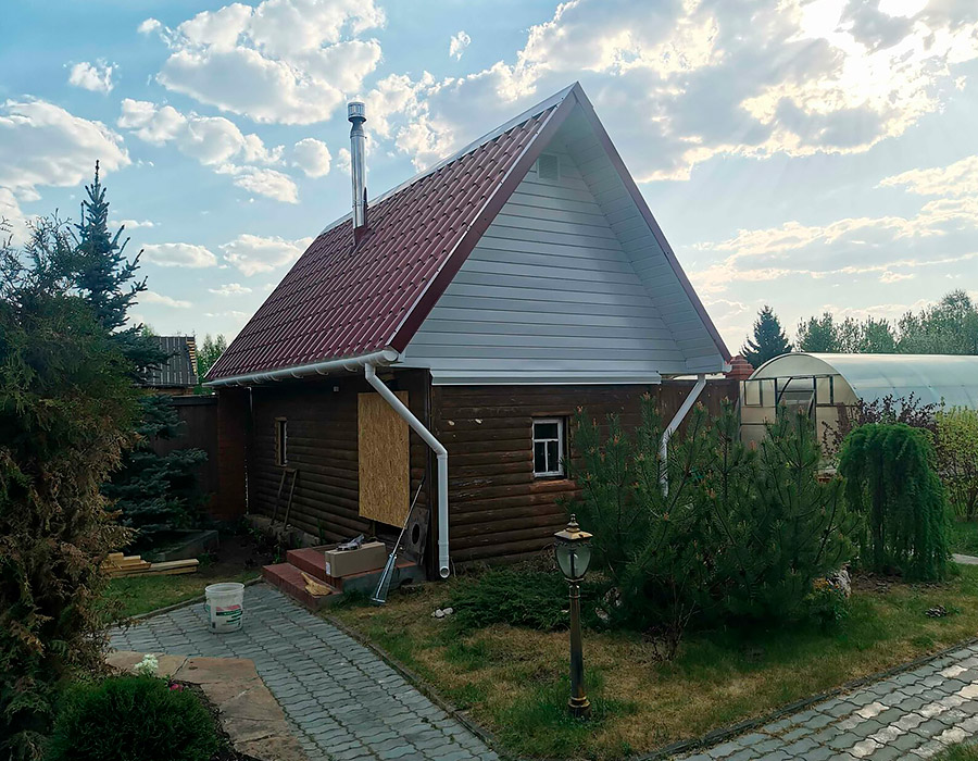 - Обязательный подшив свесов, монтаж водостока, снегозадержателей, дымохода;