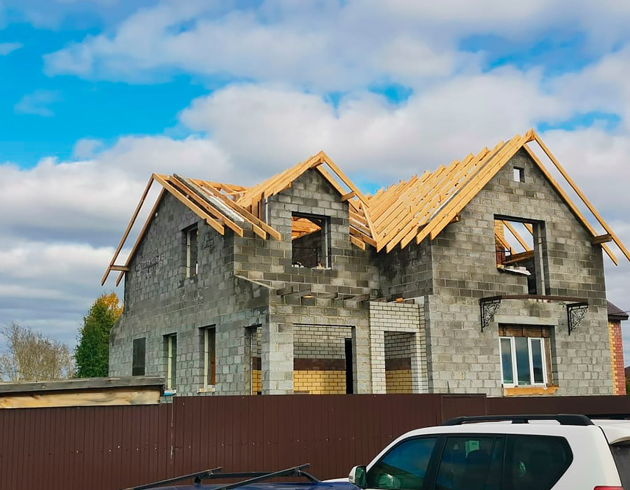 - Строительство новых крыш для любых домов: кирпич, газобетон, каркасные, брус, бревно и др;